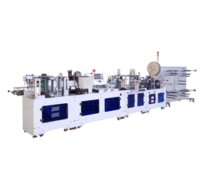 全自动设备由一台本体机和二台耳带点焊机相连,从口罩本体生产成型后,通过翻片分流后进入耳带熔接机上,再通过耳带焊接和包边直至出成品,整个过程实现全自动化生产流程,不需要人工操作,降底了人工成本。是企业实现自动化生产的选择设备。